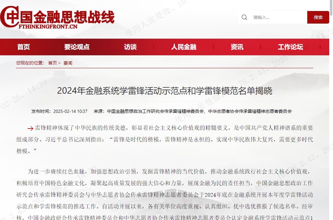 合眾人壽黑龍江分公司榮獲2024年金融系統(tǒng)學(xué)雷鋒示范點(diǎn)稱號(hào)