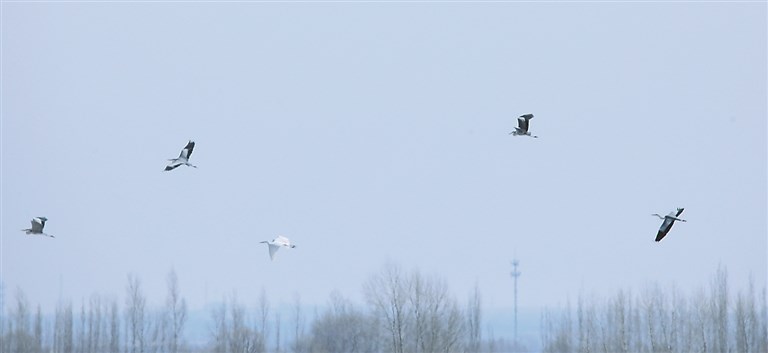 春到北國,候鳥先歸。日前,在哈爾濱市濱水大道附近的松花江江面上,東方白鸛翩翩飛過。