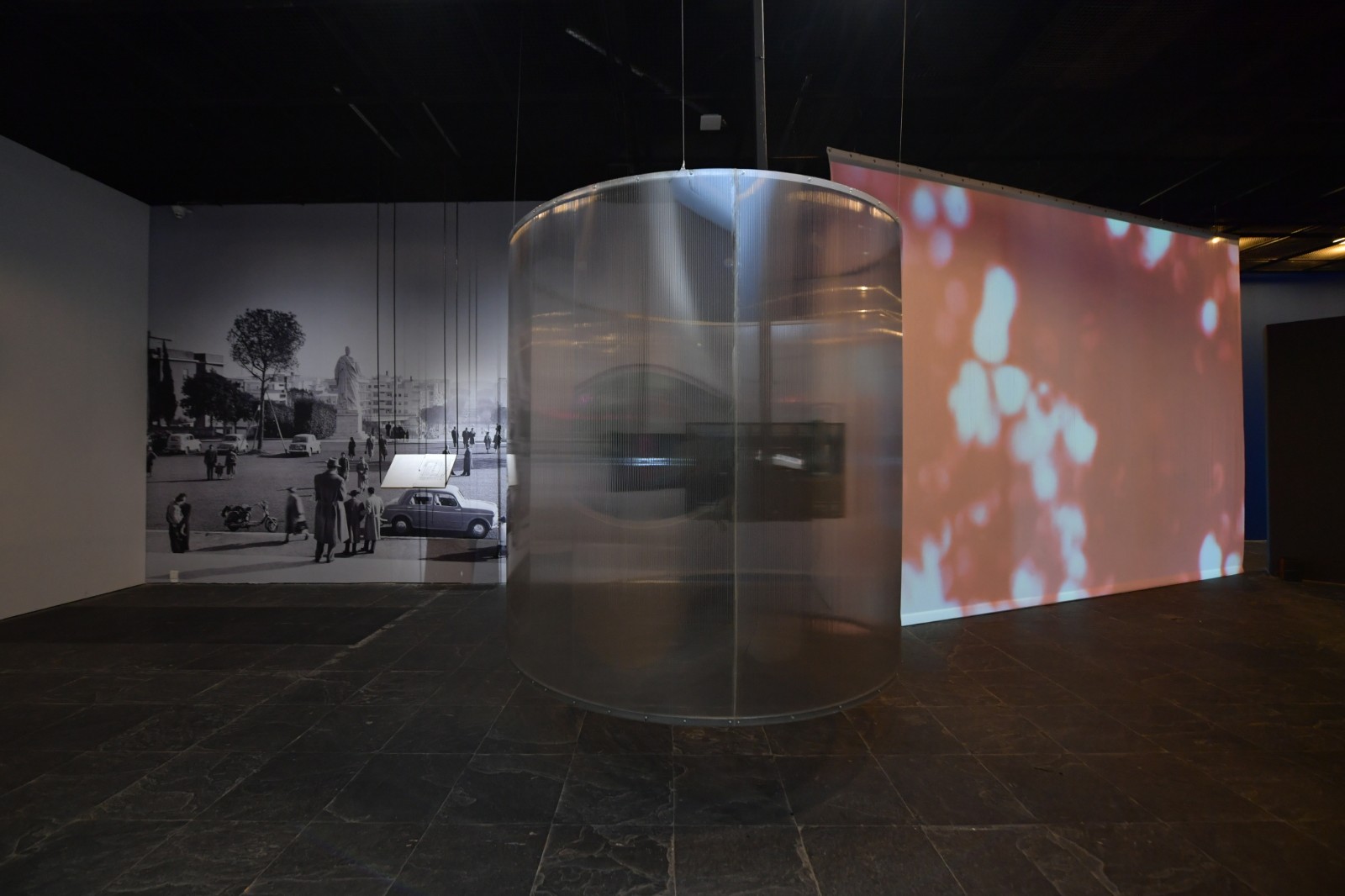 臺階的最上方引導(dǎo)著觀眾走向迷宮的“出口”——那是一個陽臺,它被認(rèn)為跨越了私人領(lǐng)域和公共領(lǐng)域之間的那條不甚明晰的界限。人們在登上陽臺的那一瞬間,目之所及的是胡偉呈現(xiàn)的“廣場”。在《為公共口口(邂逅),提案》中,胡偉對自己家鄉(xiāng)的廣場進(jìn)行了調(diào)研,廣場中心紀(jì)念碑雕塑的拆除背后是對一段宏觀歷史的回顧,展柜中陳列的文獻(xiàn)材料,3D打印復(fù)原的紀(jì)念碑與噴泉,都以一種最傳統(tǒng)的方式印證著這段歷史的發(fā)生與存在。而在面向陽臺的視頻圖像語境中,胡偉通過鏡頭的聚焦切換與角度變化,在宏觀的歷史背景外,其似乎在試圖提煉除一種模糊的普遍性,其適用于廣泛的公共空間與集體記憶,卻與人們的個體記憶都有不謀而合之處,但又難以捕捉,“沒有面目,也無人認(rèn)領(lǐng)”。