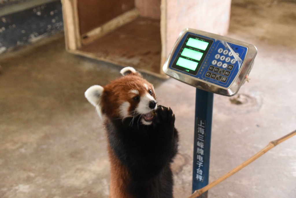 小熊貓對(duì)稱(chēng)體重、量身高體長(zhǎng)等體檢項(xiàng)目十分喜愛(ài)。因?yàn)轱曫B(yǎng)員們會(huì)用美食吸引它們走上體重秤,并在秤上直立身體量身高。小熊貓“小豆包”體檢時(shí)會(huì)展現(xiàn)出聰明又粘人的本性,抱住秤不撒爪,撒嬌賣(mài)萌很是可愛(ài)。