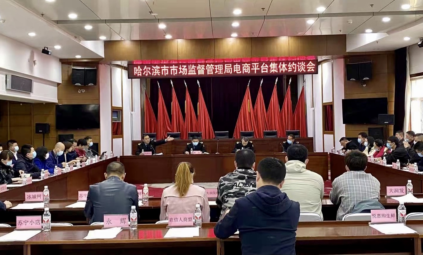 龍頭新聞訊(朱大治 記者 劉莉)近年來,哈爾濱食品、食用農(nóng)產(chǎn)品電商迅猛發(fā)展,已成為市場銷售環(huán)節(jié)的“主力軍”。為確保銷售環(huán)節(jié)主要渠道食品和食用農(nóng)產(chǎn)品安全,督促經(jīng)營者履行食品安全主體責(zé)任,針對電商平臺和經(jīng)營者還存在備案登記、公開公示、主體資格審查、進(jìn)貨查驗(yàn)等方面不符合要求的問題,23日,哈爾濱市市場監(jiān)督管理局組織美團(tuán)、京東、拼多多、橙心優(yōu)選等33家電商平臺及22家大型連鎖食品經(jīng)營企業(yè)進(jìn)行了集體約談。