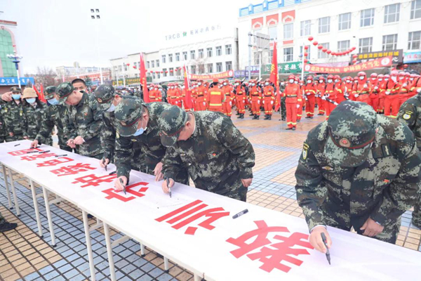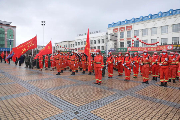 隨后防火警笛鳴起,由消防車、防火運(yùn)兵車、后勤保障車30余輛機(jī)動(dòng)車組成的車隊(duì)和千余名職工群眾組成的游行隊(duì)伍在鎮(zhèn)內(nèi)主要街道繞行一周,營造了濃厚的防火宣傳氛圍。