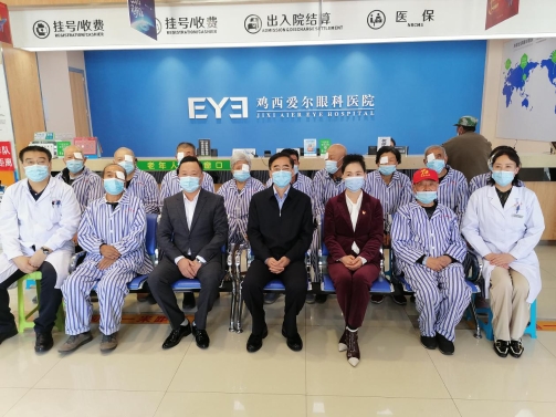 在雞西愛(ài)爾眼科醫(yī)院病房,王鋼關(guān)切地與患者進(jìn)行交流,仔細(xì)詢(xún)問(wèn)他們的術(shù)后感覺(jué)及家庭生活情況,囑咐他們要遵循醫(yī)囑,配合治療,祝他們?cè)缛栈謴?fù)健康。
