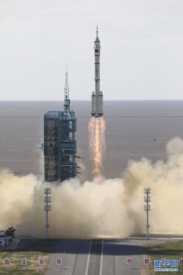 2021年6月17日9時22分,搭載神舟十二號載人飛船的長征二號F遙十二運(yùn)載火箭,在酒泉衛(wèi)星發(fā)射中心準(zhǔn)時點(diǎn)火發(fā)射,約573秒后,神舟十二號載人飛船與火箭成功分離,進(jìn)入預(yù)定軌道,順利將聶海勝、劉伯明、湯洪波3名航天員送入太空,飛行乘組狀態(tài)良好,發(fā)射取得圓滿成功。新華社記者 李剛 攝