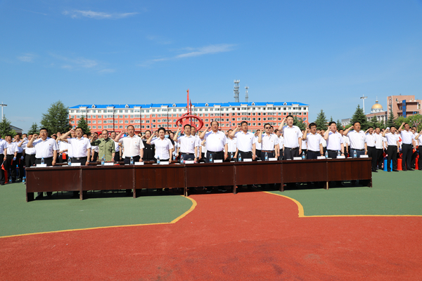 林業(yè)局黨委副書記呂光鑫為慶賀中國共產(chǎn)黨成立100周年致辭。匯演前,舉行了新黨員入黨宣誓及重溫入黨誓詞活動。只見鮮紅的黨旗在4名護旗手的佑護下走到廊臺中央,7名新黨員精神飽滿地走上臺,林業(yè)局領(lǐng)導(dǎo)胡守慶、韓鳳泉、呂光鑫、高樹源、劉麗、雄偉、王飛走上臺,為新黨員佩戴黨徽。在場黨員全部起立,面向黨旗莊嚴宣誓,“我志愿加入中國共產(chǎn)黨……”誓詞的聲音響徹廣場上空。