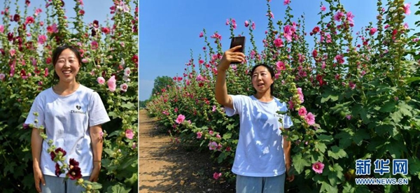 拼版照片:左圖為杜云芝在太原市小店區(qū)王吳村鮮花種植基地;右圖為杜云芝在鮮花種植基地進(jìn)行直播(7月7日攝)。今年30歲的杜云芝外出務(wù)工近10年,作為一名資深銷售人員,她有著豐富的直播經(jīng)驗。近年來,太原市小店區(qū)王吳村大力發(fā)展鄉(xiāng)村旅游,杜云芝回到家鄉(xiāng),用手機(jī)記錄鄉(xiāng)村變化,宣傳家鄉(xiāng)美景。