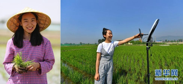 拼版照片:左圖為程玉嬌在太原市晉源區(qū)三家村水稻田里;右圖為程玉嬌在水稻田里進(jìn)行直播(7月9日攝)。今年24歲的程玉嬌2019年留學(xué)回國后,選擇了返鄉(xiāng)創(chuàng)業(yè)發(fā)展稻魚菜綜合種養(yǎng)農(nóng)業(yè)。晉源區(qū)三家村出產(chǎn)的大米遠(yuǎn)近聞名,程玉嬌在社交平臺上開通了雙語直播,在科普水稻知識的同時拓展銷售渠道,不僅生意做得風(fēng)風(fēng)火火,自己也變成了小有名氣的“網(wǎng)紅”。