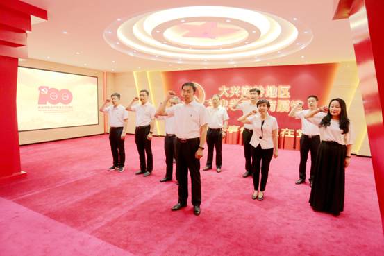 在地區(qū)黨史學(xué)習(xí)教育展館,面對(duì)鮮紅的黨旗,由區(qū)委書(shū)記王顯志領(lǐng)誓,區(qū)委理論學(xué)習(xí)中心組成員集體宣誓,重溫入黨誓詞,砥礪前進(jìn)初心,勇?lián)氊?zé)使命。