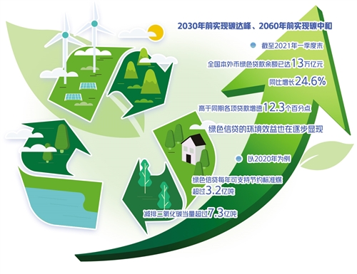 實(shí)際上,近年來我國的綠色金融發(fā)展力度已持續(xù)加大。最新統(tǒng)計(jì)數(shù)據(jù)顯示,截至2021年一季度末,全國本外幣綠色貸款余額已達(dá)13萬億元,同比增長24.6%,高于同期各項(xiàng)貸款增速12.3個(gè)百分點(diǎn)。綠色信貸的環(huán)境效益也在逐步顯現(xiàn)。以2020年為例,綠色信貸每年可支持節(jié)約標(biāo)準(zhǔn)煤超過3.2億噸,減排二氧化碳當(dāng)量超過7.3億噸。