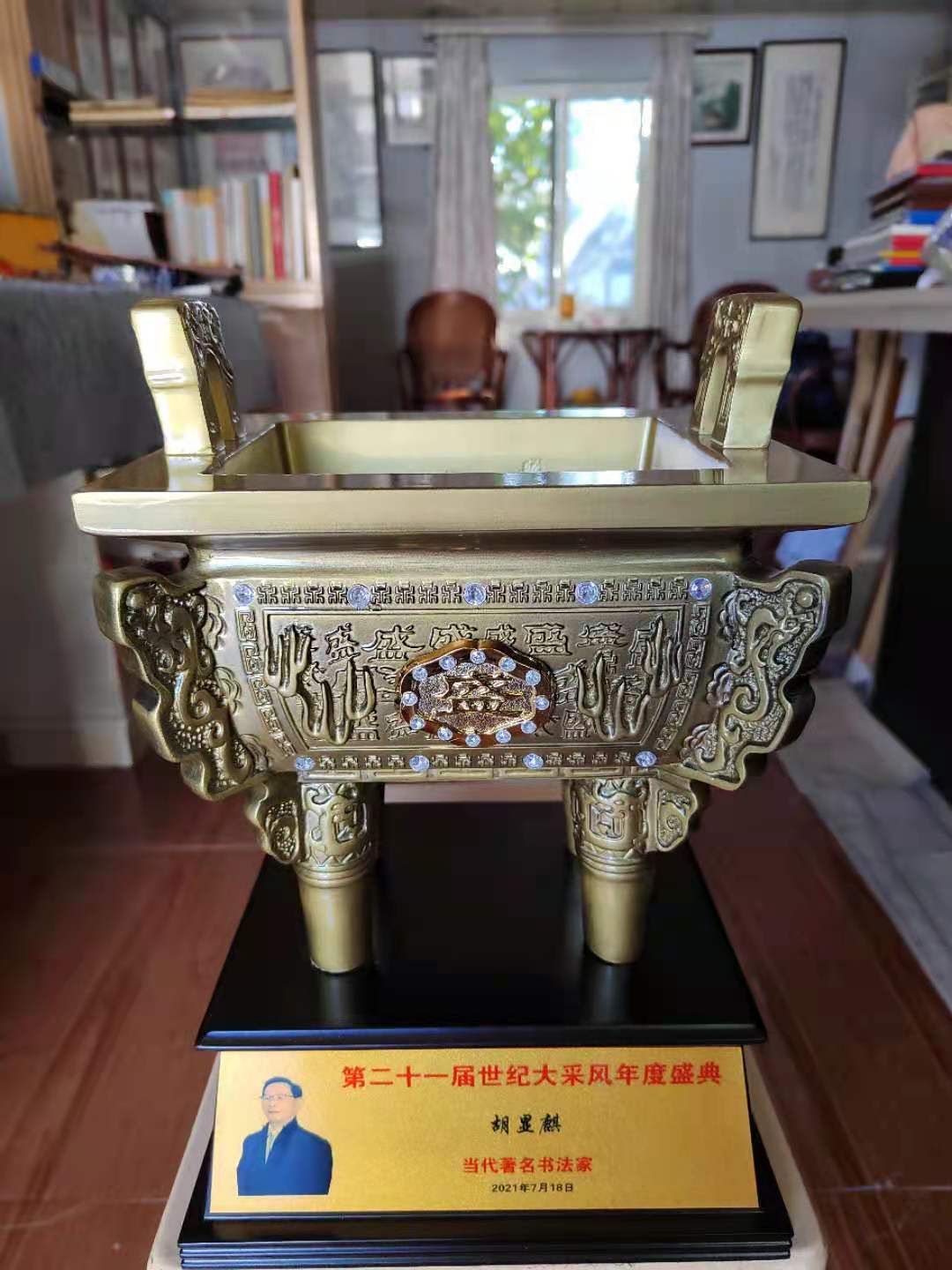 在第二十一屆世紀(jì)大采風(fēng)年度盛典中,特授予“當(dāng)代著名書法家”榮譽(yù)稱號(hào),多次參加在海南三亞和北京全國(guó)政協(xié)大禮堂舉行的頒獎(jiǎng)典禮。