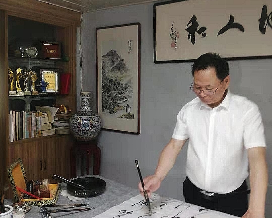 他每年向社會(huì)團(tuán)體贈(zèng)送書法作品百幅,內(nèi)容健康,有古詩(shī)詞、五字言、七字言、有毛澤東詩(shī)詞等,為弘揚(yáng)民族文化精神而努力。