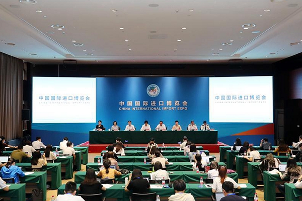 這是第四屆進(jìn)博會開幕倒計(jì)時100天新聞通氣會現(xiàn)場(7月26日攝)。新華社記者 方喆 攝
