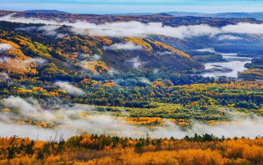 黑龍江經(jīng)濟(jì)網(wǎng)訊(記者魏?。┖邶埥那锾?,是大自然饋贈(zèng)的最華麗的狂歡,那濃得化不開的五花山色,明艷動(dòng)人,一望無際,似列維坦筆下寫實(shí)的秋彩:各類喬木正由綠向金黃漸變,當(dāng)中夾雜著火紅的楓葉、蒼翠的松枝、銀白的瀑布……比起夏日滿眼的綠色,更多了一份五彩繽紛的浪漫,一條條通向天際線的公路,仿佛可以直達(dá)天界。