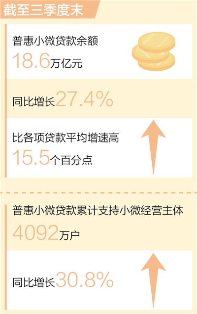 截至三季度末普惠小微貸款余額達18.6萬億元