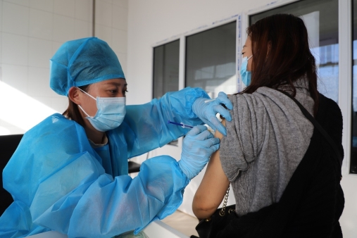 圖為阿木爾林業(yè)局職工群眾正在打第三劑加強針疫苗(王力/攝)