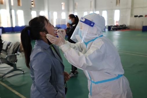 圖為阿木爾林業(yè)局正在開展全員核酸檢測(王力/攝)