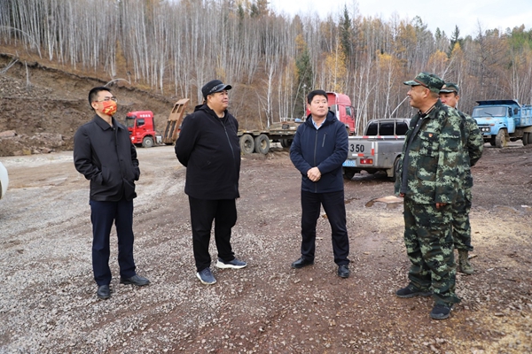 圖為阿木爾林業(yè)局黨委副書記、局長(zhǎng)韓鳳泉(右二)深入到2—1線檢查新開通路線施工進(jìn)展情況(王力/攝)
