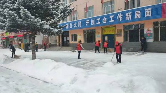 縣總工會黨支部開展掃雪志愿服務活動,雖然寒風刺骨,但大家都干得熱火朝天,經過大家共同努力,原本被積雪覆蓋的路面,露出了"安全出行通道",為出行的職工及居民帶來了方便。
