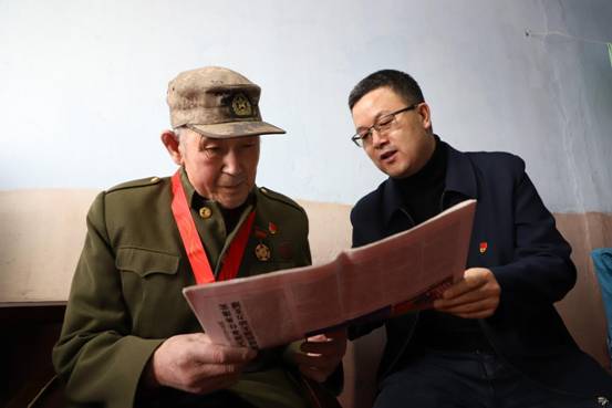 阿木爾林業(yè)局黨委委員、宣傳部部長(zhǎng)高樹(shù)源(右)走進(jìn)老黨員張俊峰家中,宣傳黨的十九屆六中全會(huì)精神(王力攝)