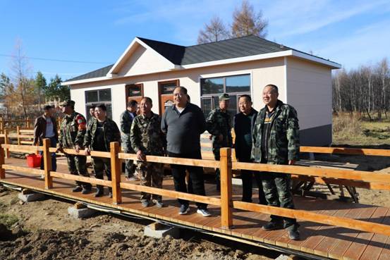 阿木爾林業(yè)局黨委書(shū)記胡守慶(右四)檢查指導(dǎo)興安林場(chǎng)精品民宿,發(fā)展旅游產(chǎn)業(yè)(王力 攝)
