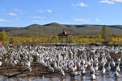 新林林業(yè)局依托當(dāng)?shù)厮葚S美的生態(tài)環(huán)境優(yōu)勢(shì),扶持開展“生態(tài)鵝”養(yǎng)殖項(xiàng)目,為職工開拓了增收致富的新途徑(崔紅霞 攝)
