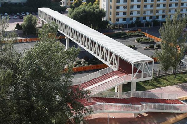 2021年秋季學(xué)期開學(xué)初,一座跨度最大、設(shè)計(jì)美觀的人行天橋?qū)⒐枮I理工大學(xué)南區(qū)征儀路兩側(cè)的校園連接在一起。哈爾濱理工大學(xué)以聚焦民生集中發(fā)力,與市政部門積極溝通并由市政府出資1300余萬元,建設(shè)了全長85.5米,寬5米,橫跨征儀路的理工南區(qū)過街天橋。天橋的建成不僅解決了師生出行安全和防疫隱患,更為學(xué)生上課、就餐提供了十分便利通行條件,天橋設(shè)計(jì)美觀、通行便捷,一落成就成為了冰城“最美天橋”和理工校園“網(wǎng)紅”打卡地。