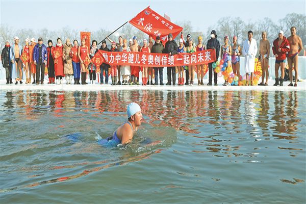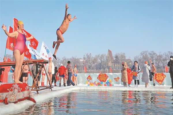 2月1日,正月初一。哈爾濱市冬泳協(xié)會(huì)的幾十位隊(duì)員,在會(huì)長(zhǎng)張友慶的帶領(lǐng)下,以冬泳的方式,迎接壬寅虎年的到來(lái)。松花江上的冬泳場(chǎng),披紅掛彩,貼上了福字。隊(duì)員們輪番從高臺(tái)、低臺(tái)上躍身而下,在江水中暢游。張友慶表示,大年初一,哈爾濱冬泳人響應(yīng)全民健身的號(hào)召,以冬泳的方式,積極參與到冰雪運(yùn)動(dòng)中來(lái),以健康的身體、飽滿的精神,迎接北京冬奧會(huì)。