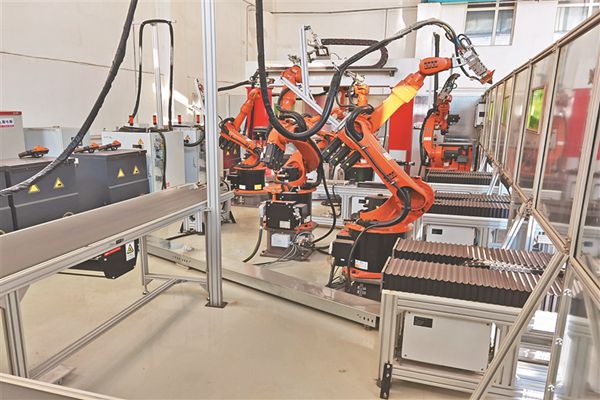 哈工大為企業(yè)研制的自動(dòng)化冰刀生產(chǎn)線的焊接機(jī)器人。