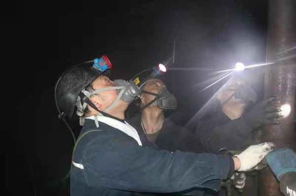 李鳳明領著當班職工組織停工檢查 (圖片由龍煤雙鴨山公司提供)