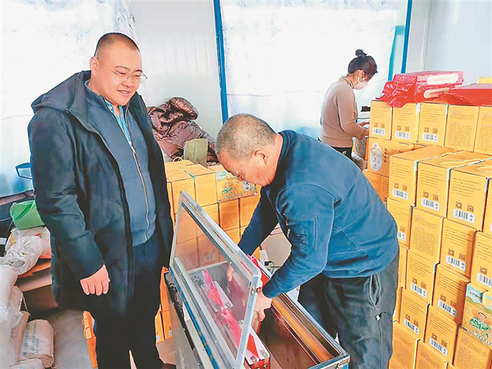 村民在塑封大米。