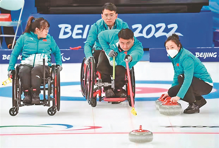 北京冬殘奧會(huì)的第一天,中國(guó)輪椅冰壺隊(duì)開(kāi)局不利,先后不敵加拿大隊(duì)和瑞典隊(duì),壓力可想而知。之后中國(guó)隊(duì)迅速調(diào)整狀態(tài)。6日,9:3戰(zhàn)勝愛(ài)沙尼亞隊(duì),贏得循環(huán)賽首勝。7日,接連戰(zhàn)勝韓國(guó)隊(duì)和瑞士隊(duì),以三勝兩負(fù)的戰(zhàn)績(jī)與拉脫維亞隊(duì)并列第三名。11日,中國(guó)隊(duì)對(duì)陣加拿大隊(duì)爭(zhēng)奪決賽名額。12日,輪椅冰壺決賽中,中國(guó)隊(duì)在前四局1:2落后瑞典隊(duì)的情況下改變戰(zhàn)術(shù),利用對(duì)手失誤成功拿到4分。最終,中國(guó)輪椅冰壺隊(duì)8:3戰(zhàn)勝瑞典奪得冠軍。