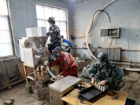根據(jù)設(shè)備操作指南,呼中林業(yè)局中心苗圃從3月中旬便開始著手生產(chǎn)作業(yè),工作中他們采用機械與人工相結(jié)合的方式,每天加班加點、技術(shù)人員跟班作業(yè)。同時,為加快生產(chǎn)進度,他們還租用一臺挖掘機,將凍土原料運送到圃內(nèi)大棚,并用燒爐解凍烘干的方法,與珍珠巖肥料按一定比例混合成基制,再用機器灌裝成型,每日生產(chǎn)可達8000余個。截至目前,已完成輕基質(zhì)容器育苗杯生產(chǎn)10萬+。