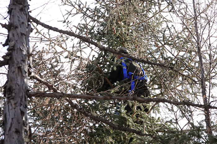 在收集區(qū)內(nèi),工作人員按照對比樹法,進行優(yōu)樹選擇,并為每棵優(yōu)樹進行了“戶口”登記,掛牌、GPS定位、拍照、生境及生長量記載。同時,他們還在選取的每棵優(yōu)樹中上部位置采集優(yōu)質(zhì)穗條30條,用于嫁接來完成林木種質(zhì)資源異地無性系收集。