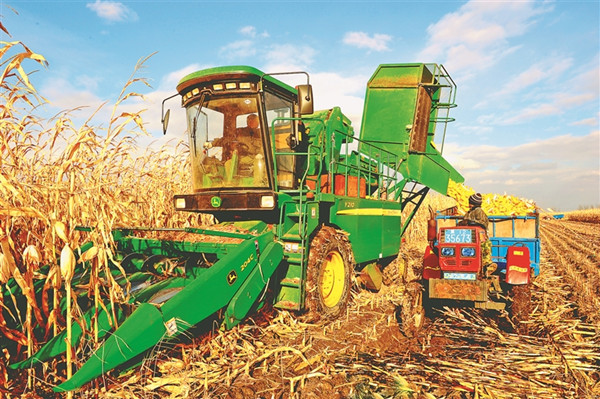 青岡縣機(jī)械化收割場(chǎng)景。