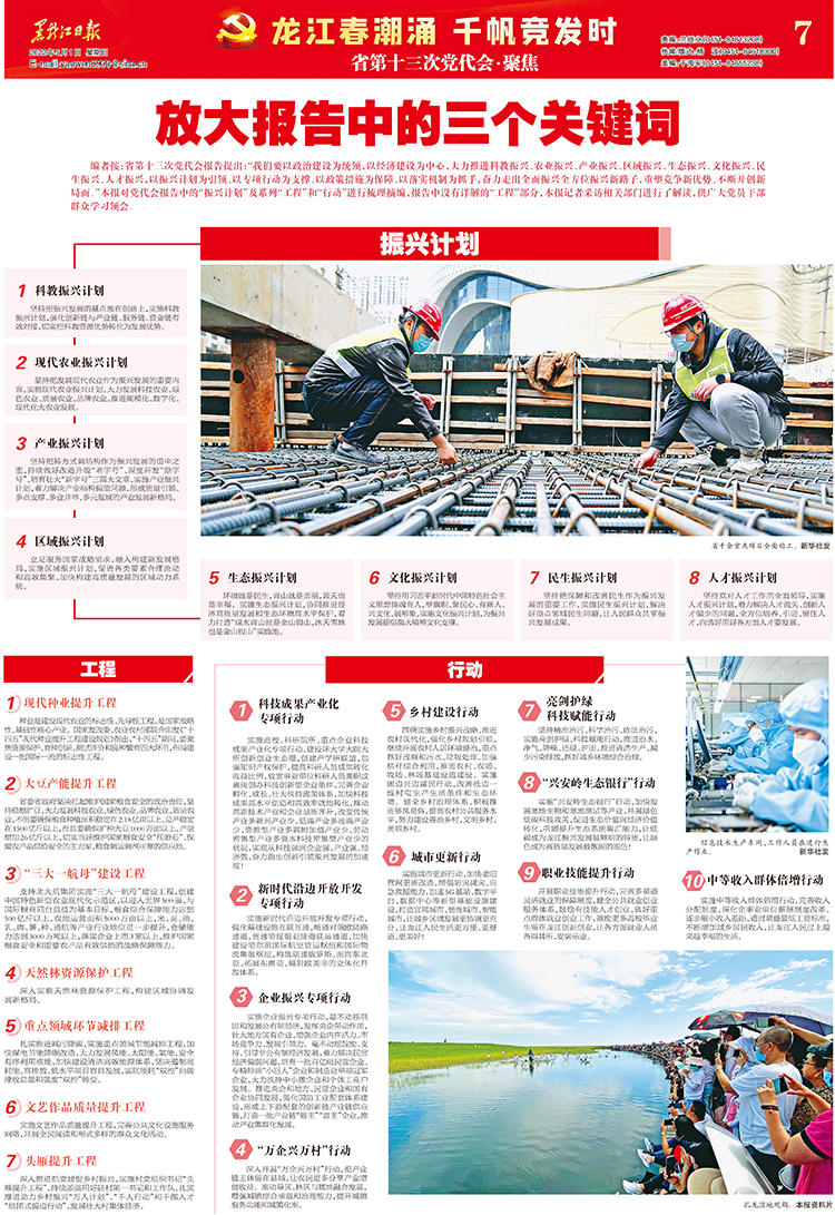 編者按:省第十三次黨代會(huì)報(bào)告提出:“我們要以政治建設(shè)為統(tǒng)領(lǐng),以經(jīng)濟(jì)建設(shè)為中心,大力推進(jìn)科教振興、農(nóng)業(yè)振興、產(chǎn)業(yè)振興、區(qū)域振興、生態(tài)振興、文化振興、民生振興、人才振興,以振興計(jì)劃為引領(lǐng)、以專項(xiàng)行動(dòng)為支撐、以政策措施為保障、以落實(shí)機(jī)制為抓手,奮力走出全面振興全方位振興新路子,重塑競爭新優(yōu)勢、不斷開創(chuàng)新局面?!北緢?bào)對黨代會(huì)報(bào)告中的“振興計(jì)劃”及系列“工程”和“行動(dòng)”進(jìn)行梳理摘編,報(bào)告中沒有詳解的“工程”部分,本報(bào)記者采訪相關(guān)部門進(jìn)行了解讀,供廣大黨員干部群眾學(xué)習(xí)領(lǐng)會(huì)。