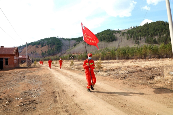 阿木爾林業(yè)局綠林林場專業(yè)撲火隊(duì)伍進(jìn)行輕裝快速行軍兩公里比賽(王力 攝)