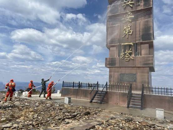據(jù)相關(guān)負(fù)責(zé)人介紹,“興安第一塔”因所處位置大興安嶺最高峰而得名,這里常年缺少水源,瞭望員日常生活用水需要從幾公里外的地方人工背運(yùn),今天用水噴淋“興安第一塔”尚屬首次。