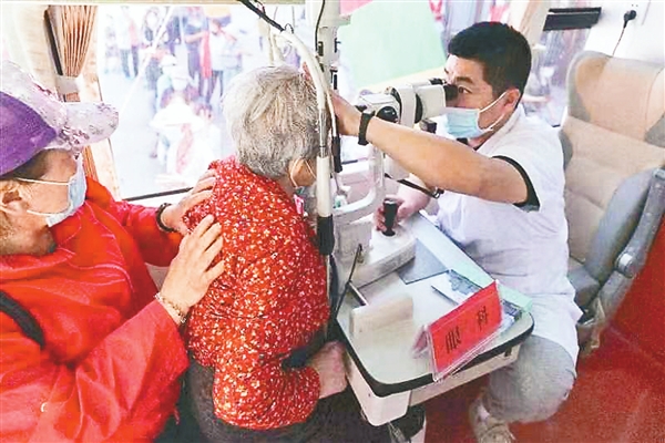 圖為醫(yī)生在為老人做眼部檢查(胡涵/攝)