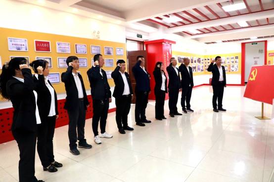 依西林場(chǎng)黨支部組織黨員面對(duì)黨旗重溫入黨誓詞(王力 攝)