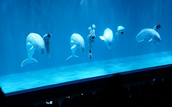 2009年,哈爾濱極地公園首推極地白鯨水下表演,歷時13年的時間,“來哈爾濱·看白鯨表演”已經(jīng)成為全國游客心馳神往的旅游節(jié)目,而表演中經(jīng)典的“海洋之心”不僅獲得了原創(chuàng)版權,也成為了哈爾濱一張具有浪漫色彩的文旅名片,獲得國內、國際主流媒體持續(xù)十余年的關注。2021年5月,三只可愛的極地白鯨創(chuàng)造的“三鯨開泰”首次亮相;現(xiàn)在,哈爾濱極地公園的白鯨家族推出“四鯨巡游”、“四鯨祈?!钡雀唠y度表演,再一次創(chuàng)造了經(jīng)典。