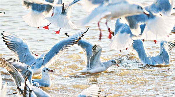 近年來(lái),隨著環(huán)境保護(hù)力度的加大,松花江生態(tài)持續(xù)向好,水豐魚(yú)多,給紅嘴鷗等候鳥(niǎo)提供了豐富的食物。每年,都有超過(guò)萬(wàn)只的紅嘴鷗春秋兩季在松花江這處“驛站”歇腳。 黑龍江日?qǐng)?bào)記者 張澍攝