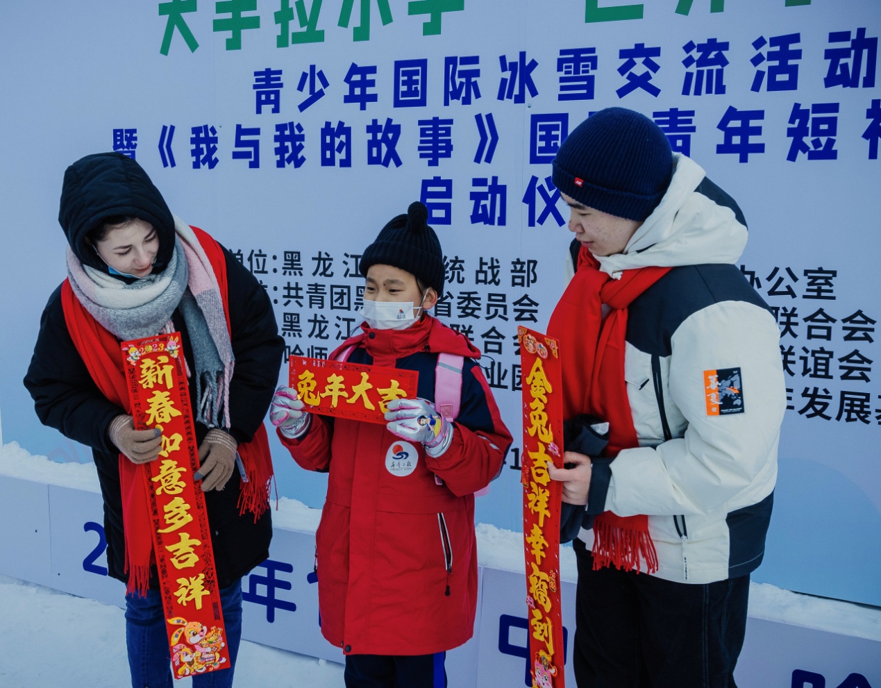 當(dāng)天上午,在雪博會,來自黑龍江大學(xué)的各國留學(xué)生代表與中國青少年結(jié)對互動,互贈新春禮物,表達對即將迎來的兔年美好祝福。中外青少年小手拉大手,共游太陽島雪博會,鯉魚躍龍門、圓夢啟程、雪冠博覽等雪雕雪景讓大家流連忘返。世界各國青少年一起雕刻“宇航員”雪雕,送上春聯(lián)祝福語,體驗了中國傳統(tǒng)文化和濃濃的年味,表達了對世界文化共融的美好祝愿。