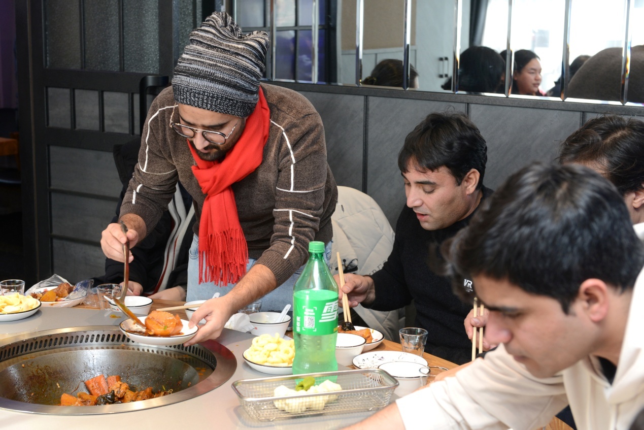 中午,留學(xué)生們品嘗了東北特色美食“鐵鍋燉”——鐵鍋燉大鵝、燉排骨,東北特色鍋包肉、拔絲地瓜讓留學(xué)生們感受了中華美食的魅力,大家紛紛贊嘆中華美食文化的博大精深,雖然遠離家鄉(xiāng),卻在熱氣騰騰的美食中感受到家的溫暖。品味美食的過程中,有的留學(xué)生穿上東北特色大花襖,有的穿上中國傳統(tǒng)服飾雪披風(fēng),系上花圍巾,大家喜不勝收,將中國元素展示給世界。