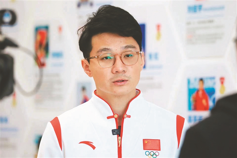 任子威、曲春雨分別接受采訪。 本報(bào)記者 張澍攝