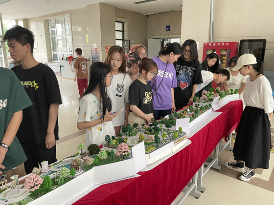 作品展上,一座座精美的校園景觀模型吸引著廣大師生駐足品評(píng)。