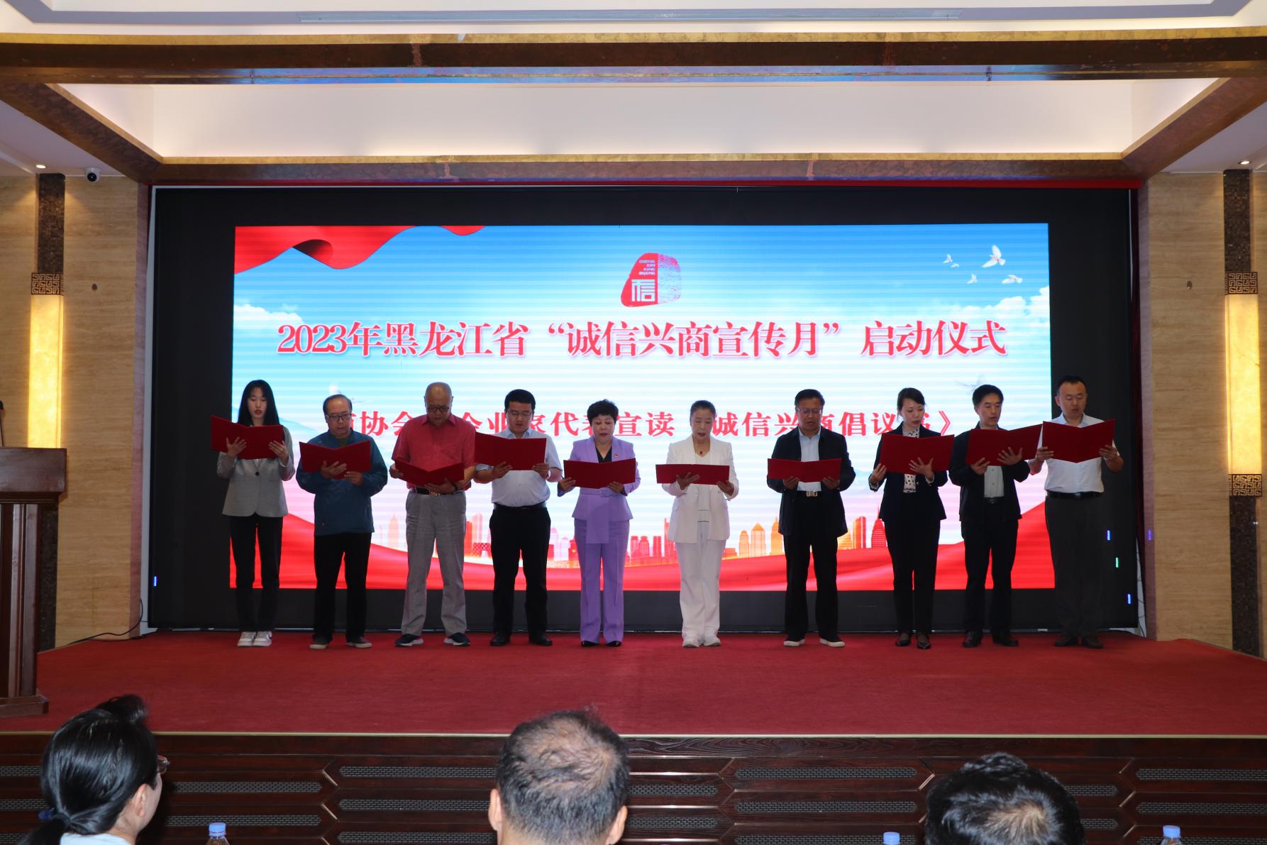 省委宣傳部、省直機關(guān)工委、省商務(wù)廳、省交通運輸廳、省文旅廳、省國資委、省營商環(huán)境建設(shè)監(jiān)督局、哈爾濱海關(guān)、省稅務(wù)局、省市場監(jiān)督管理局、省外匯管理局、省高級人民法院、省工商聯(lián)、哈爾濱商業(yè)大學(xué)、省廣播電視臺等相關(guān)單位人員,省誠信建設(shè)促進會、省社會保障行業(yè)協(xié)會、省內(nèi)行業(yè)商協(xié)會負責(zé)人,優(yōu)秀企業(yè)代表及媒體代表等100余人參加了啟動儀式。