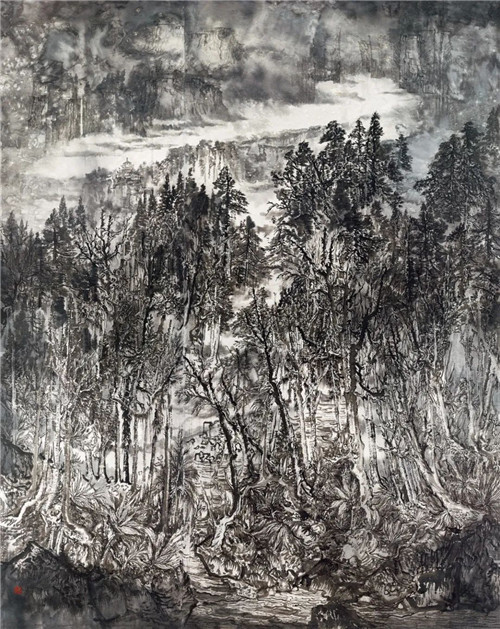 譚長(zhǎng)德 衡山松云 231cm×192cm 國(guó)畫(huà)