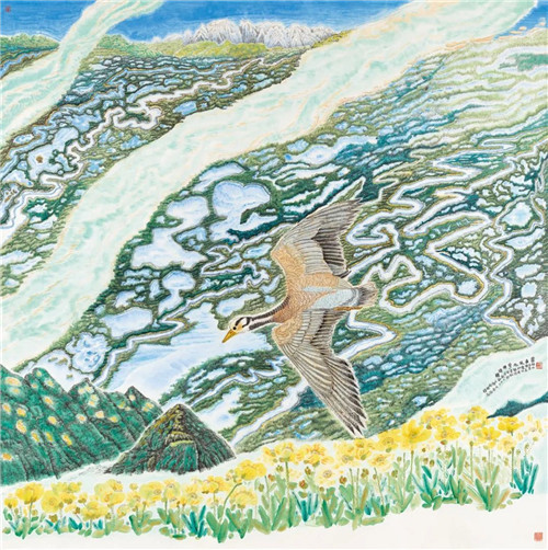 徐冬青 當(dāng)曲風(fēng)光 花開(kāi)源頭 200cm×200cm 國(guó)畫(huà)