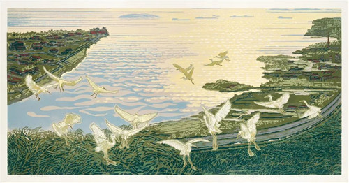 張國(guó)琳 湯曉云 巢湖 90cm×180cm 版畫(huà)