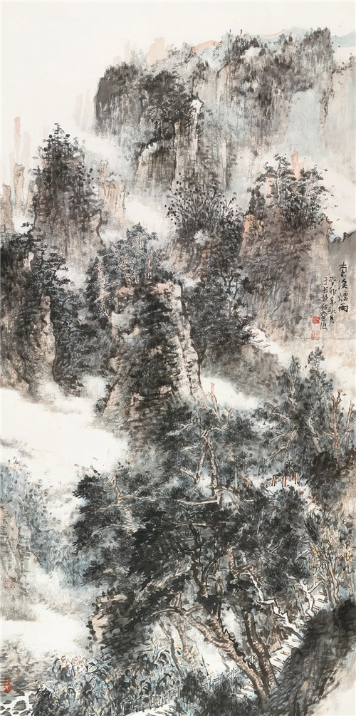 薛磊 青城嵐煙 234cm×123cm 國(guó)畫(huà)